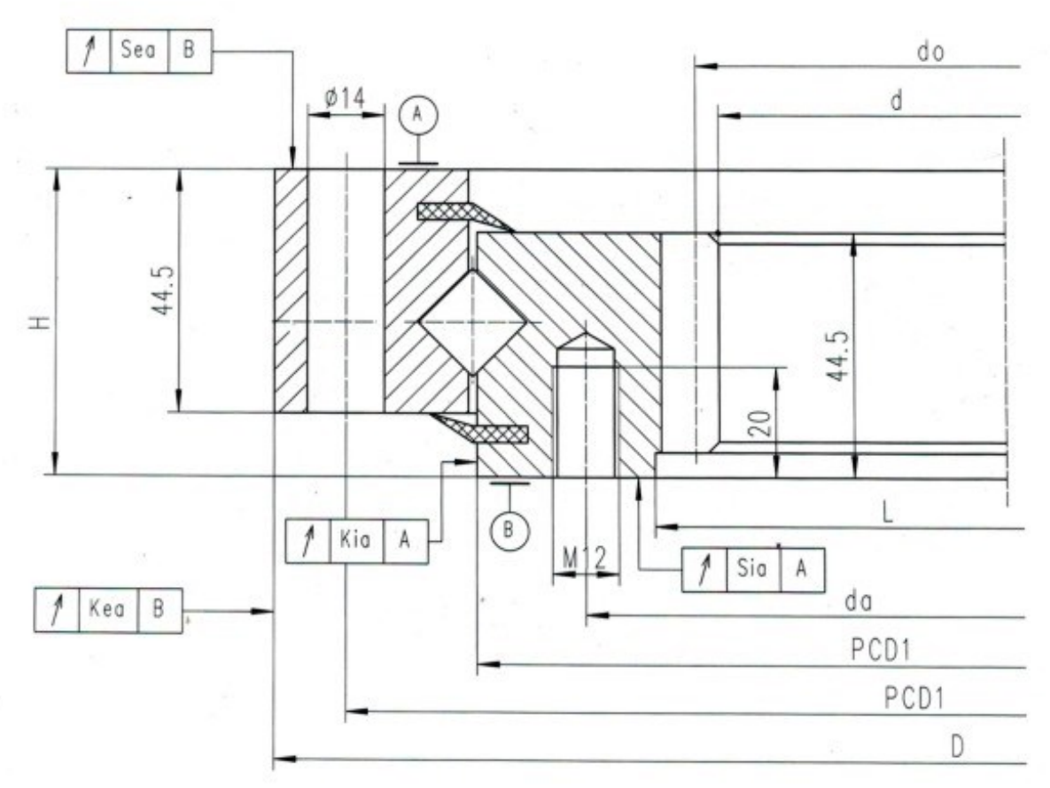 | 内径d | 外径D | 宽度H | PCD1 | PCD2 | Kea | Kia | Sia | Sea | Ca(kN) | Coa(kN) | Cr(kN) | Cor(kN) | kg | |